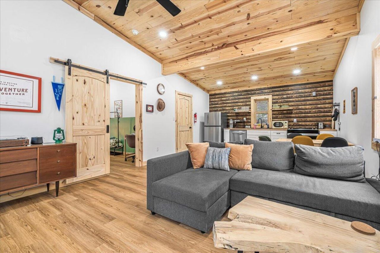 Bearcat Ridge is a well-appointed one-bedroom cabin located just off KY Hwy 15 in Campton, Kentucky, offering a strong short-term rental opportunity in the Red River Gorge market. Designed for couples, the cabin blends modern finishes with rustic character and provides a private, wooded setting while remaining close to top regional attractions. The open-concept living area features large windows with forest views, a sectional sofa, live-edge coffee table, Bluetooth turntable, Wi-Fi projector and screen, . The fully equipped kitchen includes a stove, dishwasher, microwave, and dining space. The bedroom offers a king bed, a unique ski chair feature, a desk for remote work, and direct deck access. The bathroom includes a tiled walk-in shower. Outdoor amenities include an expansive deck with seating, propane fireplace, propane grill, and a fire pit???highly desirable features for STR guests. Centrally located minutes from Natural Bridge State Park, Daniel Boone National Forest, Auxier Ridge Trail, climbing areas, Mill Creek Lake, ziplining, off-road trails, and cave tours, the property benefits from year-round tourism demand. Bearcat Ridge offers a turnkey cabin option in one of Eastern Kentucky's most established short-term rental markets.