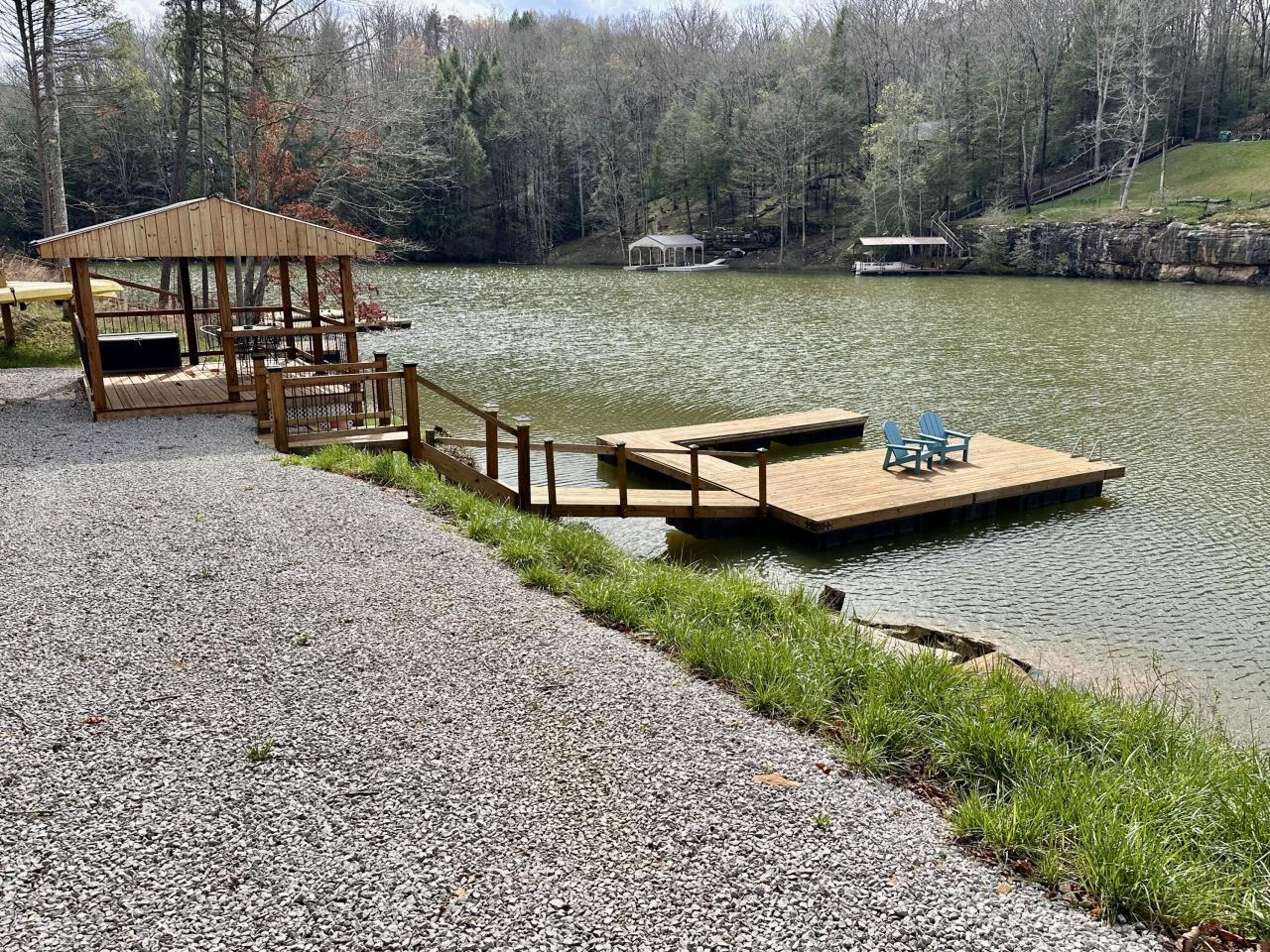 Peaceful Lakefront Property with Dock & Outdoor Living Perks.This charming lakefront property offers the perfect blend of comfort, convenience, and natural beauty Wood Creek Lake and Wood Bend Subdivision has to offer. Enjoy wide-open views of the water from your already cleared lot-ideal for relaxing weekends or building your dream getaway.Spend your days on the water from your private, well-constructed (24 ft long, 26 foot wide, with a 10 foot slip) boat dock, then unwind in the covered 12x16 waterfront cabana featuring a unique fish weather vane that adds a fun, lake living touch. The gravel driveway provides easy access, while the spacious 28x28 poured basement walls offers tons of potential for storage, hobbies, or future home. Extras included make this property truly wonderful: 2 kayaks with paddles, a storage chest, a table with four chairs, and two beautifully built Adirondack chairs-all set up and ready for you to start enjoying lake life right away.Whether you're looking for a weekend retreat or a peaceful place to build your future, this lakefront gem has it all.