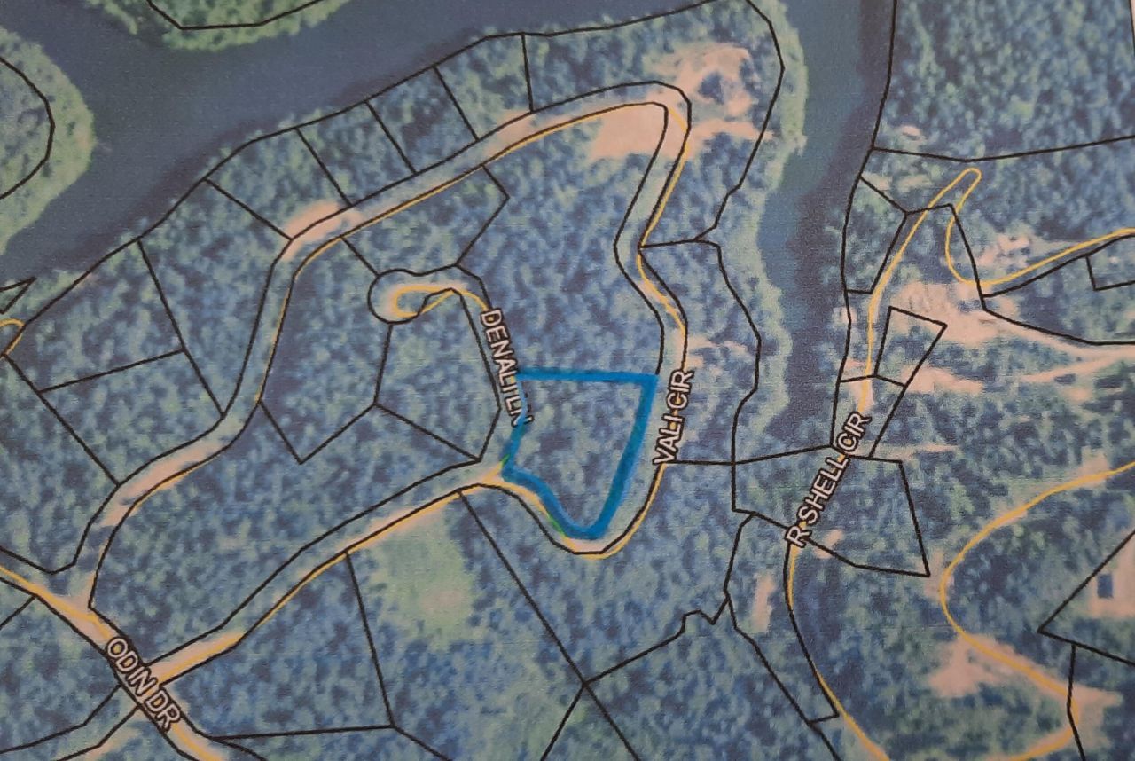 Beautiful wooded lot near Wood Creek Lake. The lot begins at Denali Lane with 586 feet of road frontage on Vali Circle plus 195 feet on Denali Lane. (per subdivision plat) This lot has a huge flat that is easily accessible from Denali. So many possibilities for your woodland dream home!